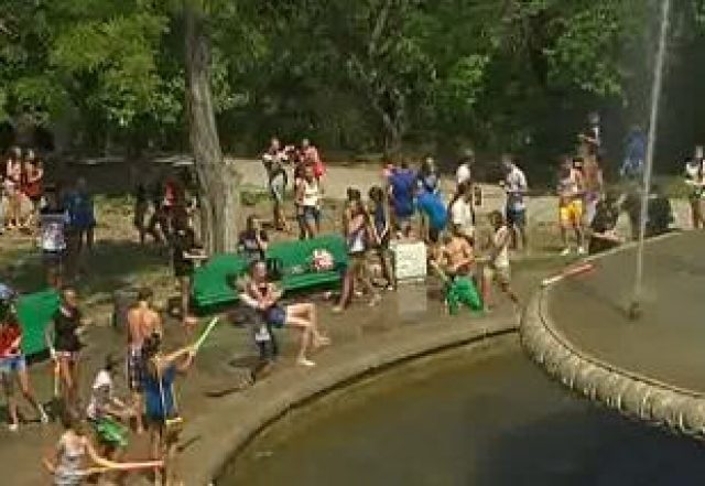 В ход идет все, что может стрелять – водные пистолеты, насосы и пластиковые бутылки. Веселью и радости фонтанных купальщиков нет предела. Хотя недовольные водным развлечением все же нашлись.