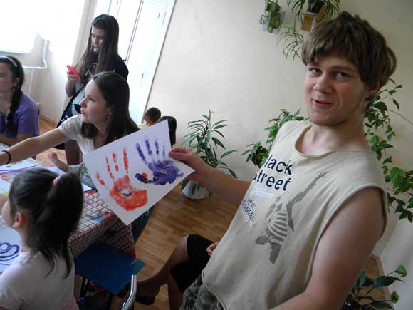 Первым делом мы разрисовывали свою ладошку и отпечатывали ее на бумаге и говорили «Я – здесь!». Для чего это нужно? Главное, что должен осознать ребенок – это то, что он есть и он здесь, в мире. Это не так очевидно, как кажется на первый взгляд. В начале жизни маленький человечек зависим от матери и ощущает себя неотделимым от нее. Входя в социум, мы учимся быть частью коллектива: семьи, класса, команды коллег, поколения, общества. Свое собственное «Я» часто остается неосознанным, непроявленным. Поиск себя длится всю жизнь. Людмила считает, что этот путь человек может начать уже в детстве. Простой отпечаток руки - уже большой шаг, поскольку служит цели объективации индивида: ребенок видит свой след в мире как доказательство того, что он существует как отдельный уникальный индивид.