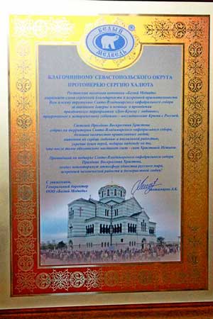 12 апреля 2015 года молочная компания «Белый Медведь» передала в дар всем трудящимся в Свято-Владимирском соборе в Херсонесе в качестве угощения в праздник Светлого Христова Воскресения и в знак благодарности за совместное проведение мероприятия уменьшенные подарочные копии «Царь-Пасхи». Руководство компании выразило особую благодарность благочинному Севастопольского округа, настоятелю Свято-Владимирского кафедрального собора в Херсонесе протоиерею Сергию Халюта за труды.