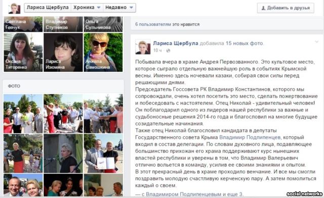 Пятого августа Лариса Щербула написала о том, как во время своего визита в Керчь председатель Госсовета Крыма Владимир Константинов с керченскими чиновниками посетил храм Андрея Первозванного Московского патриархата Русской православной церкви.