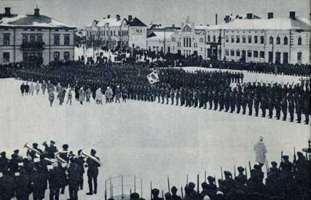 В рядах сочувствующих социалистическим изменениям в России было сравнительно немного финнов – до двухсот тысяч (или не так уж и мало для трехмиллионной страны?), но это были подавляющее большинство квалифицированных промышленных рабочих и часть интеллигенции (учителей, служащих, даже депутатов финского парламента). Не стоит забывать и о «третьей силе» - военщине, большей частью навербованной кайзеровскими спецслужбы и выученными в военных лагерях Германии в период Первой мировой войны. По планам германского командования они должны были атаковать русские гарнизоны на территории Финляндии и совместно с националистами дестабилизировать ситуацию. Наивно верить сказкам новоявленных защитников «российской империи», пугающих телезрителей «разоблачениями» о «германских шпионах» и «пломбированных вагонах». Нет, союзники Германии прибыли не в купейном вагоне: тысячи натренированных и вооруженных боевиков высадились на побережье Финляндии и сразу же развязали «белый» террор против своих политических противников.