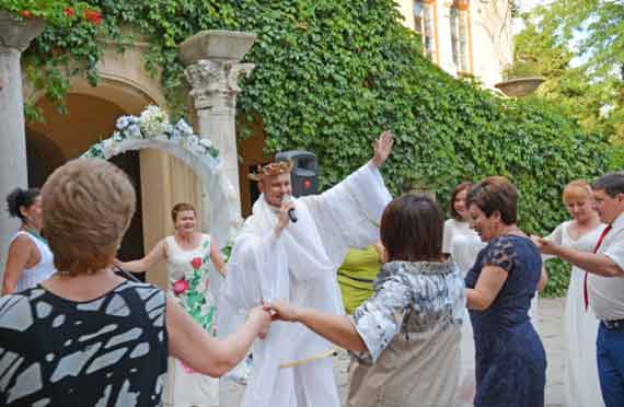 Для гостей праздника прошел музыкальный концерт и чествование «золотых» и «серебряных» семейных пар. Для тех, кто решил связать себя узами брака в этот день, состоялась церемония выездного бракосочетания. 50 лет счастливого супружества отметили Людмила Владимировна и Валерий Пантелеевич Иванченко, и семья Жуковских, Евгений Георгиевич и Зинаида Павловна. Вслед за золотыми юбилярами у свадебной арки заняли место семья Климовых, Тамара Павловна и Андрей Георгиевич и семья Бариевых, Юрий Русланович и Лия Георгиевна. На День Петра и Февронии свои судьбы решили связать молодые пары. Клятву верности дали друг другу Дмитрий Владимирович Южва и Татьяна Владимировна Бавельчук. Вторая пара молодоженов - театральная. Это сотрудники Севастопольского театра им. А.В. Луначарского - Андрей Маймусов и Людмила Кобыльченко.