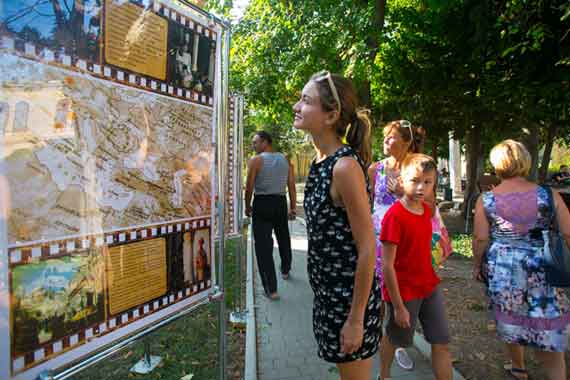 Как сообщают Новости Севастополя, 27 августа на территории Херсонеса прошли праздничные мероприятия. С самого утра в Итальянском дворике начала работать выставка «Херсонес. Камера. Мотор», где были представлены фоторепродукции кинокадров из фильмов, съемки которых проходили на территории Херсонесского музея-заповедника, уникальные фотографии, сделанные на съемочной площадке, газетные статьи и скриншоты снимавшихся в Херсонесе фильмов.
