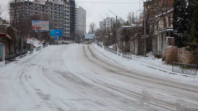 Зимний сезон преподнес севастопольским чиновникам третий «метеорологический сюрприз». В последние выходные дни в городе выпало достаточно большое количество осадков: дождя и мокрого снега, которые, в результате минусовой температуры, преобразовались в ледяную корку, покрывшую городские дороги. О том, как справляются городские службы с непогодой – в материале корреспондента Крым.Реалии.