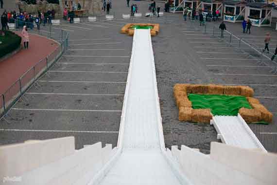 Стоит отметить, что развлечение пришлось по душе не только детям, но и взрослым, которые с удовольствием катаются на горке. Для удобства выдают резиновую плюшку, на которой собственно и скатываются вниз. К слову, синтетический лед на ней может выдержать температуру до +15 градусов.