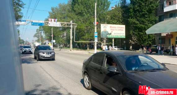 На одной из улиц Керчи расположен билборд, на котором изображен лидер КНДР Ким Чен Ын, рекламирующий крымскую строительную компанию «Монолит».