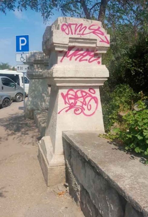В понедельник, 3 сентября, неизвестные изрисовали один из элементов каменного ограждения Исторического бульвара возле стоянки автомобилей на улице 4-я Бастионная.