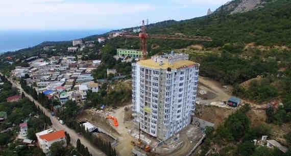 Интересно, что согласно проектной декларации, этот дом строился уже при России на земле, которая выдана застройщику в сентябре 2014 года в субаренду украинской компанией «Хмарочос», которая сама арендовала этот участок в 2010-и году у местных властей.