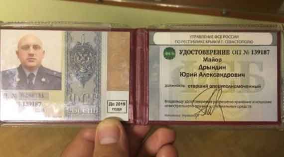 До аннекии Крыма Россией Дрынин служил в Службе безопасности Украины, в отделе по борьбе с ОПГ и коррупцией. Позднее переметнулся уже в УФСБ полуострова, где за служебные успехи получил повышение. После этого Украина объявила майора в дезертирстве и объявила в розыск