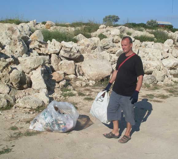 Каждое утро, вместо зарядки, я стал собирать мусор в мешки и вывозить их к знакомым контейнерам. Две недели я боролся с этой горой. Она казалась бесконечной, неприступной. Но наступил день, кода я ее победил. Это была первая победа. Я решил не останавливаться. Сначала выбрал полосу берега шириной в 10 метров. Начал убирать. И так каждое утро по 2-4 больших полиэтиленовых пакета. Мне разрешили выбрасывать мусор в контейнеры парка. Набирал и шел с этими пакетами по набережной пляжа. Меня стали замечать люди, которые ходят по утрам на море. Сначала на меня все смотрели искоса, потом решили, что я работаю уборщиком и это моя территория. Я стал объяснять, что это я делаю по собственному желанию сделать дикий пляж чистым.
