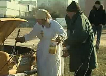 С наступлением холодов прихожане нескольких Севастопольских храмов организовали передвижные пункты питания для малоимущих граждан. Точки, где можно получить горячий обед, расположены в разных районах города. Места для размещения пунктов питания при содействии Севастопольского территориального управления МЧС согласованы с районными администрациями. За работой одного из таких пунктов наблюдала съемочная группа телеканала НТС.На перекрестке Столетовского проспекта и улицы Шевченко три раза в неделю, в одиннадцать часов появляются желтые «Жигули» с горячими обедами. Это - машина Общины сестер милосердия при Храме святителя Луки в первой городской больнице. Сестры привозят нуждающимся наваристый суп, второе блюдо, салат и горячий чай с вареньем. Продукты закупаются исключительно за счет пожертвований. Помогает женщинам молодой человек – волонтер.