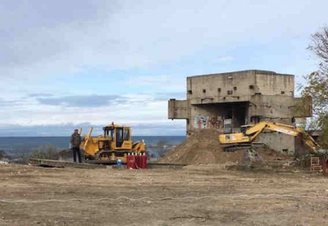 Строительная техника сносит недостроенный музей на мысе Хрустальный, ноябрь 2018 года